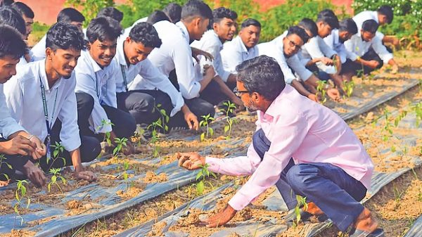 কলেজের শিক্ষক ও স্থানীয় মানুষেরা জানান, ২০১৮ সালে কলেজের শিক্ষার্থীদের জন্য উৎপাদনমুখী শিক্ষা কার্যক্রম চালু করা হয়। এ জন্য কলেজের পূর্ব দিকে ৪০ শতাংশ জায়গায় একটি কর্নার গড়ে তোলা হয়। যেখানে শিক্ষার্থীদের ছানোয়ার হোসেন পড়াশোনার ফাঁকে হাতে–কলমে বিষমুক্ত নিরাপদ ফসল উৎপাদন শেখান। সেখানে বিভিন্ন মৌসুমের সবজি, ফল, মসলার চারা তৈরিও শেখানো হয়। এখানে চাষবাস শিখে শিক্ষার্থীরা তাঁদের বাড়িতেও সবজিবাগান করতে পারেন। সম্প্রতি সরেজমিনে দেখা যায়, মহিষমারা গ্রামের শুরুতেই কলেজটির অবস্থান। কলেজে প্রবেশ করে দুপুরের দিকে দেখা যায়, দুটি শ্রেণিতে ক্লাস চলছে। আর উৎপাদনমুখী শিক্ষা কর্নারে অন্তত ৩০ জন শিক্ষার্থী কাজ করছেন। কলেজের প্রতিষ্ঠাতা ছানোয়ার হোসেন তাঁদের সবজিবীজ বোনার আগে মাটি তৈরি শেখাচ্ছেন। শিক্ষার্থীরা তাঁর নির্দেশনামতো মাটি তৈরির কাজ করছেন। ছানোয়ার হোসেন জানান, ১৯৯২ সালে স্নাতক ডিগ্রি লাভের পর তিনি সিলেটের একটি স্কুলে ইংরেজি বিভাগের শিক্ষক হিসেবে চাকরিজীবন শুরু করেন। সেখানে প্রায় সাড়ে তিন বছর চাকরি করে ফিরে আসেন গ্রামে। গ্রামের স্কুলে দুই বছর প্রধান শিক্ষকের দায়িত্ব পালন করেন। কিন্তু কৃষির আকর্ষণে তিনি সেই চাকরিও ছেড়ে দেন। বৈজ্ঞানিক পদ্ধতিতে আনারস, কলা, হলুদ, ভুট্টা, মাল্টা, ড্রাগন, পেয়ারা, কফিসহ বিভিন্ন ফসল উৎপাদন করে সফল হন। কিন্তু দেখতে পান, এলাকার ২০ কিলোমিটারের মধ্যে কোনো কলেজ নেই। দরিদ্র কৃষক পরিবার তাদের সন্তানদের দূরে ছাত্রাবাসে রেখে পড়াতে পারে না। তাই সিদ্ধান্ত নেন, নিজ এলাকায় একটি কলেজ প্রতিষ্ঠা করবেন। পৈতৃক সূত্রে প্রাপ্ত বাড়ির পাশের জমির ওপর ২০১৩ সালে প্রতিষ্ঠা করেন মহিষমারা কলেজ। কলেজটি ২০২২ সালে এমপিওভুক্ত হয়। বর্তমানে এই কলেজে তিন শতাধিক শিক্ষার্থীর জন্য ১৮ জন শিক্ষক রয়েছেন। সরকারের শিক্ষা বিভাগ থেকে একটি পাকা ভবনও এই কলেজে করে দেওয়া হয়েছে। ২০২২ সালে ছানোয়ার হোসেন জাতীয় কৃষি পুরস্কার ১৪২৬ পান। বর্তমানে তিনি কলেজটির পরিচালনা পর্ষদের সদস্য। তিনি মনে করেন, পরিকল্পিতভাবে গ্রামে বসে চাষবাস করেও ভালোভাবে চলা সম্ভব। তাই শিক্ষার্থীরা লেখাপড়া শেষে চাকরি না পেলে যাতে বেকার বসে না থাকেন, সে জন্য তাঁদের উৎপাদনমুখী শিক্ষা দেওয়ার পরিকল্পনা নেন তিনি। ছানোয়ার হোসেন বলেন, ‘আমাদের দেশের মাটি উর্বর। এখানে যেকোনো ফসল ফলানো যায়। জমি ছাড়াও রাস্তাঘাট, বাড়ির ছাদ—যেখানে খুশি চাষাবাদ করা যায়। কিন্তু কৃষিনির্ভর দেশ হলেও কৃষি বিষয়টি অবহেলিত। লেখাপড়ার পর কেউ আর মাঠপর্যায়ে কৃষিকাজ করতে চান না। তাই শিক্ষিত যুবকদের কৃষিমুখী করতেই এই উৎপাদনমুখী শিক্ষাব্যবস্থা চালু করেছি।’