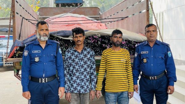 টাঙ্গাইলের মির্জাপুরে ট্রাক ও ১৪ টন রডসহ ডাকাতচক্রের দুই সদস্যকে গ্রেপ্তার করেছে পুলিশ। ঢাকার সাভার উপজেলার যাদুরচড় এলাকা থেকে তাদের গ্রেপ্তার করা হয়। শনিবার সন্ধ্যায় (২৪ জানুয়ারি) মির্জাপুর থানার পরিদর্শক