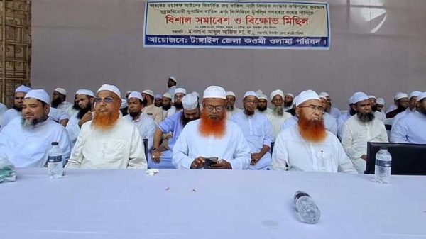 টাঙ্গাইলে ভারতের ওয়াকফ আইনের বিতর্কিত রায় বাতিল, নারী বিষয়ক সংস্কার কমিশনের কুরআন সুন্নাহ বিরোধী সুপারিশ বাতিল এবং ফিলিস্তিনে গণহত্যার বন্ধের দাবিতে বিক্ষোভ সমাবেশ করেছে জেলা কওমী ওলামা পরিষদ। শনিবার (২৬