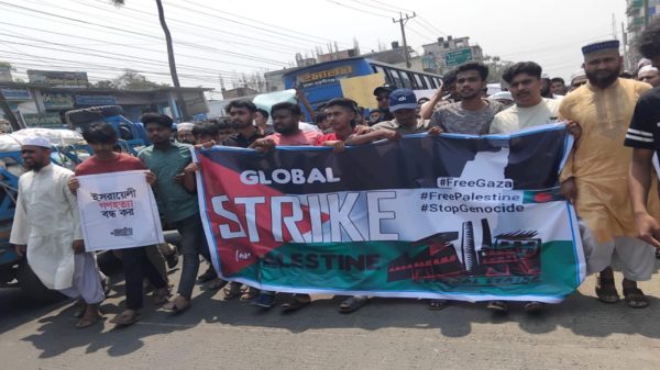 বিষেশ প্রতিনিধি:: গাজা উপত্যকায় ইসরায়েলি বাহিনীর চলমান বর্বর হামলা ও মানবাধিকার লঙ্ঘনের বিরুদ্ধে সারা দেশের ন্যায় টাঙ্গাইলের ঘাটাইল বিক্ষোভ করেছে সাধারণ জনগণ। সোমবার (৭ এপ্রিল) বেলা ১১টায় ঘাটাইল উপজেলার বিজয়