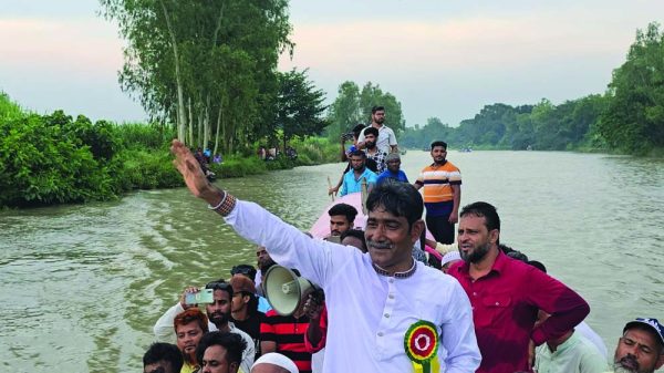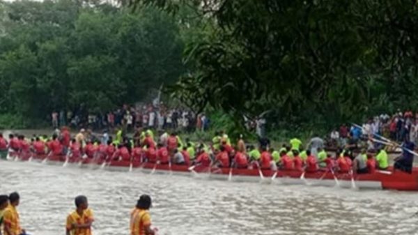 টাঙ্গাইল সদর উপজেলার ছিলিমপুর ইউনিয়নের এলেংজানী নদীতে জমজমাট নৌকা বাইচ প্রতিযোগিতা অনুষ্ঠিত হয়েছে। সোমবার (৮ আগস্ট) বিকেলে বরুহা গ্রামবাসীর উদ্যোগে আয়োজিত এই প্রতিযোগিতা দেখতে নদীর দুই পাড়ে ভিড় করেন হাজারো