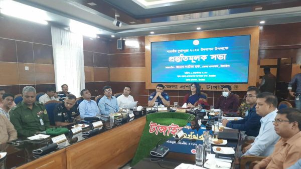 টাঙ্গাইলের ১২টি উপজেলার ১২৩৬টি মণ্ডপে আসন্ন দুর্গাপূজার আয়োজন চলছে। গতকাল মঙ্গলবার (৯ সেপ্টেম্বর) জেলা প্রশাসনের আয়োজনে জেলা প্রশাসকের কার্যালয়ের সম্মেলন কক্ষে প্রস্তুতিসভায় এ তথ্য জানানো হয়েছে। জেলা প্রশাসক শরীফা হকের