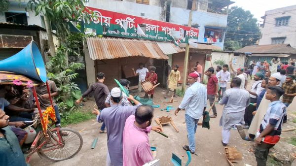 টাঙ্গাইল জেলা জাতীয় পার্টির অফিস ভাঙচুর করেছেন গণঅধিকার পরিষদের নেতাকর্মীরা। শনিবার (৩০ আগস্ট) সকাল সাড়ে ১১টার দিকে টাঙ্গাইল শহরের থানার পাশে জাতীয় পার্টির অফিস ভাঙচুর করা হয়। গণঅধিকার পরিষদের সভাপতি