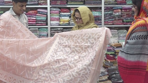 ঈদকে সামনে রেখে টাংগাইলের তাঁতের শাড়ির পাইকারি হাটগুলোতে বাড়ছে বেচাকেনা